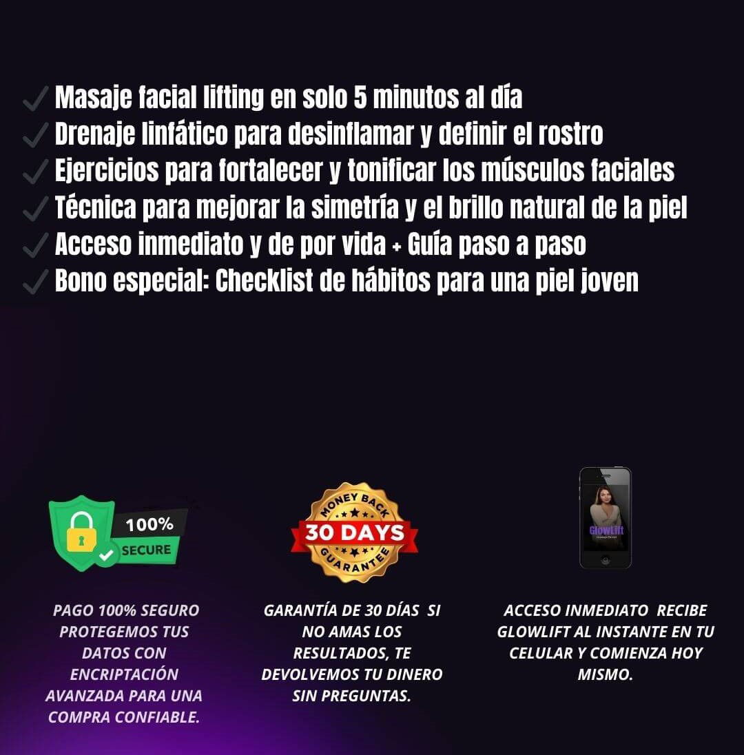 Con la Guía de Escultura Facial GlowLift, aprenderás un método natural y efectivo que ha ayudado a miles de personas a resaltar su belleza y restaurar la vitalidad de su piel. A través de técnicas de masaje facial, esta rutina activa la circulación sanguínea, drena los vasos linfáticos y estimula la producción de colágeno, definiendo los contornos faciales y proporcionando una apariencia más saludable y radiante.